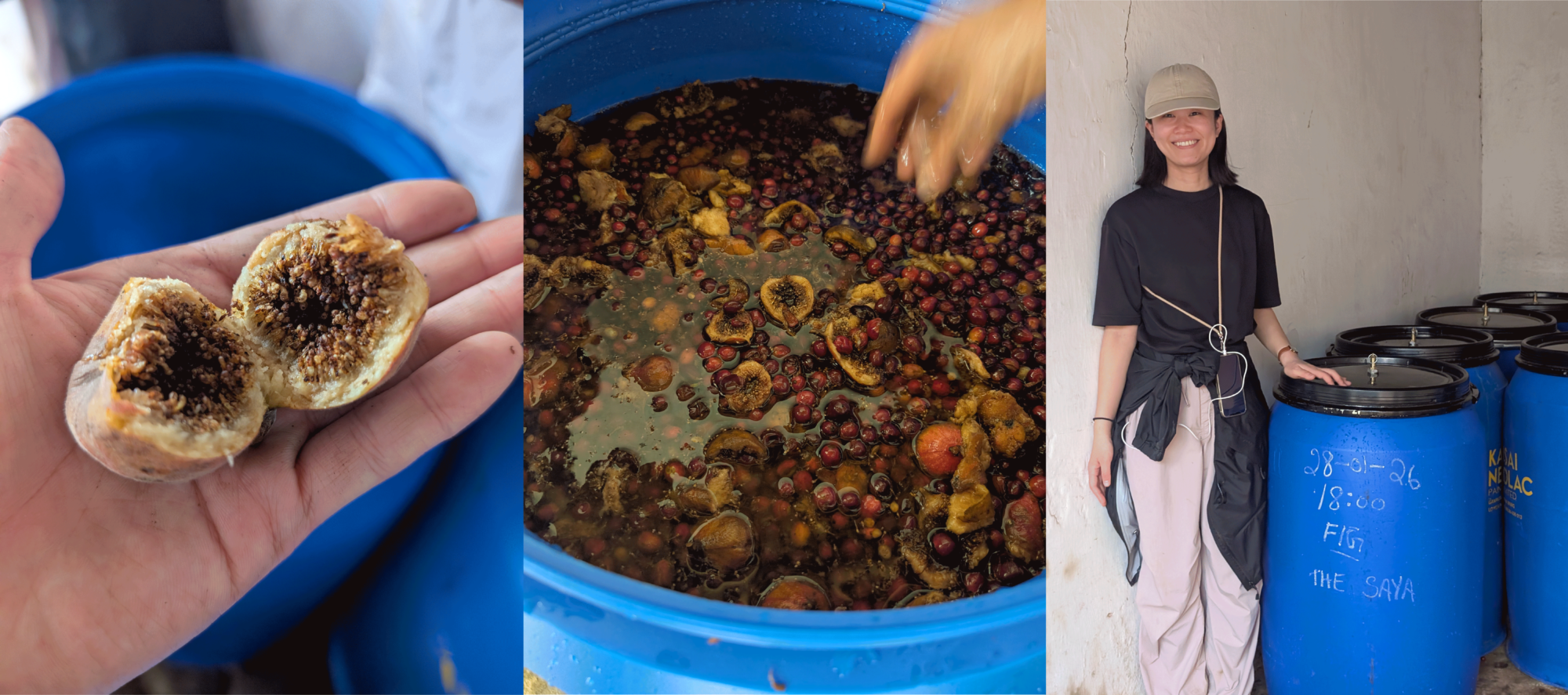 後でわかったのですが、発酵のスターターとして、イチジクに多く含まれるマグネシウムやカリウムはいい働きをしてくれるそうです。コーヒーチェリーだけでは生み出せない発酵がなされて、味わいがきっと変わるはず。