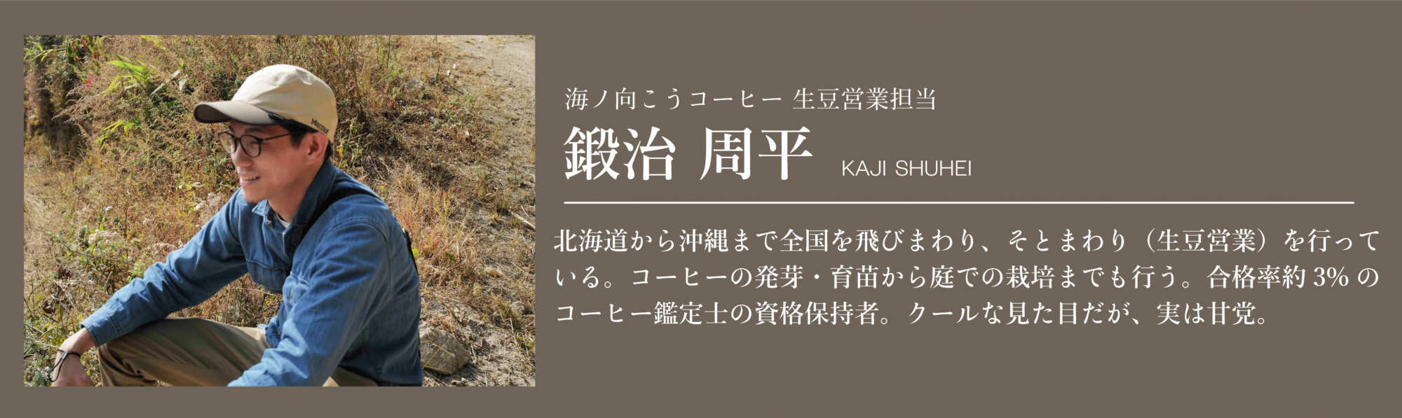 海ノ向こうコーヒーで、生豆営業を担当している鍛治です。