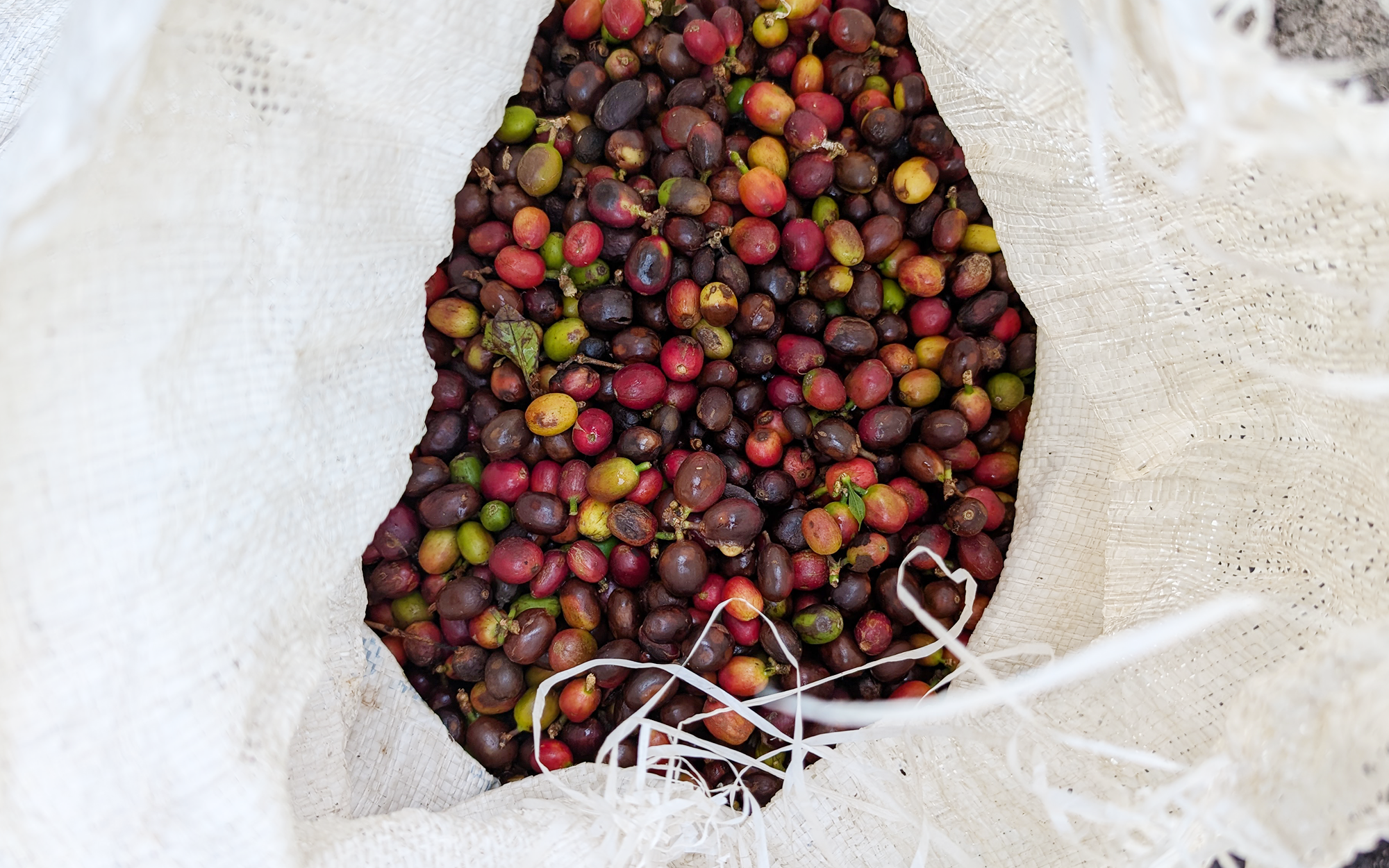 この地域では、加工時にクリンチ山から流れる湧水を使用して洗浄します。この湧水にはミネラル成分がたくさん含まれていて、それがコーヒーの複雑な味わいとまろやかな口当たりにつながっているのだそうです。そして、生豆の色味にも関係が……。ミネラル成分の影響で、生豆の色がより濃い青色になる特徴がある、とスルヨノさんが教えてくださいました。